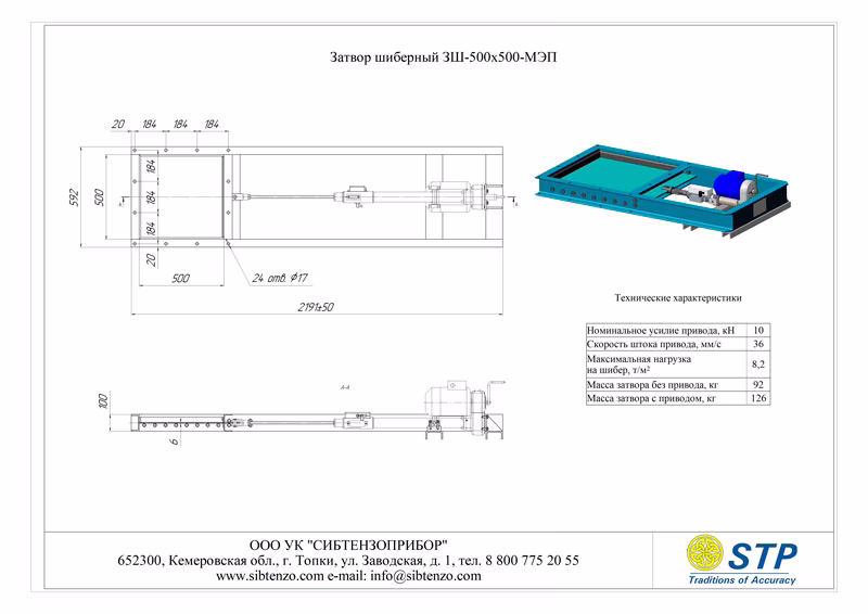 Наименование Габариты проходного окна шибера, мм Состав затвора шиберного ЗШ Масса Максимальная нагрузка на шибер, т/м2