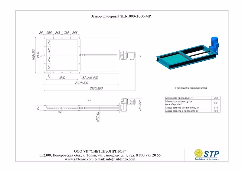 Затвор шиберный 3Ш-1000х1000-МР выполняет функцию регулирования либо полной блокировки потока веществ. Отличительной особенностью устройства является использование металлического ножа (пластины) в качестве запорного элемента.